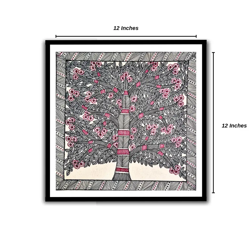This handmade Madhubani Tree & Flower painting beautifully captures the essence of nature in traditional Mithila folk art style. The tree symbolizes life, growth, and stability, while the flowers represent purity, beauty, and positivity. Together, they create a harmonious artwork that reflects the deep spiritual connection between humans and nature.