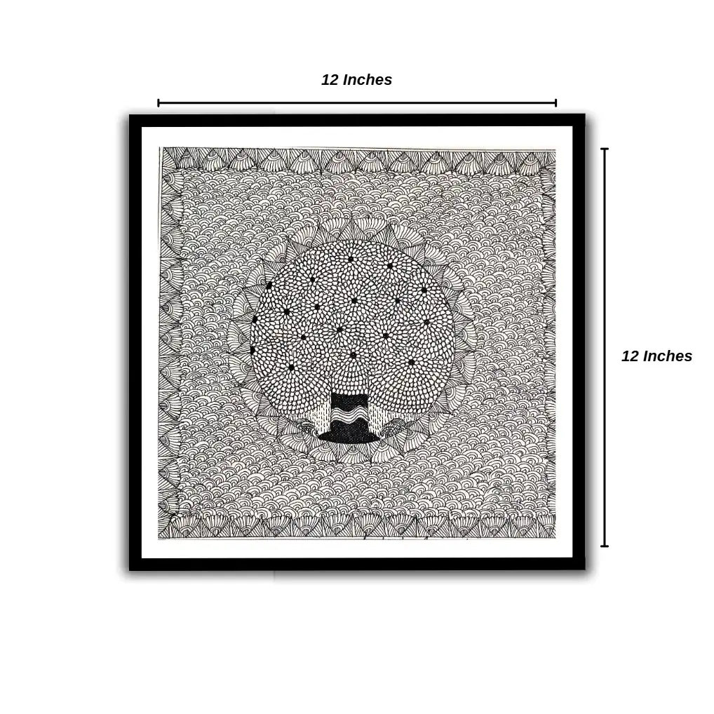 This handmade Madhubani tree painting reflects the deep spiritual connection between humans, nature, and divinity. In Mithila tradition, the tree is a sacred symbol of life, strength, and balance, often representing growth, abundance, and eternal connection with the universe.
