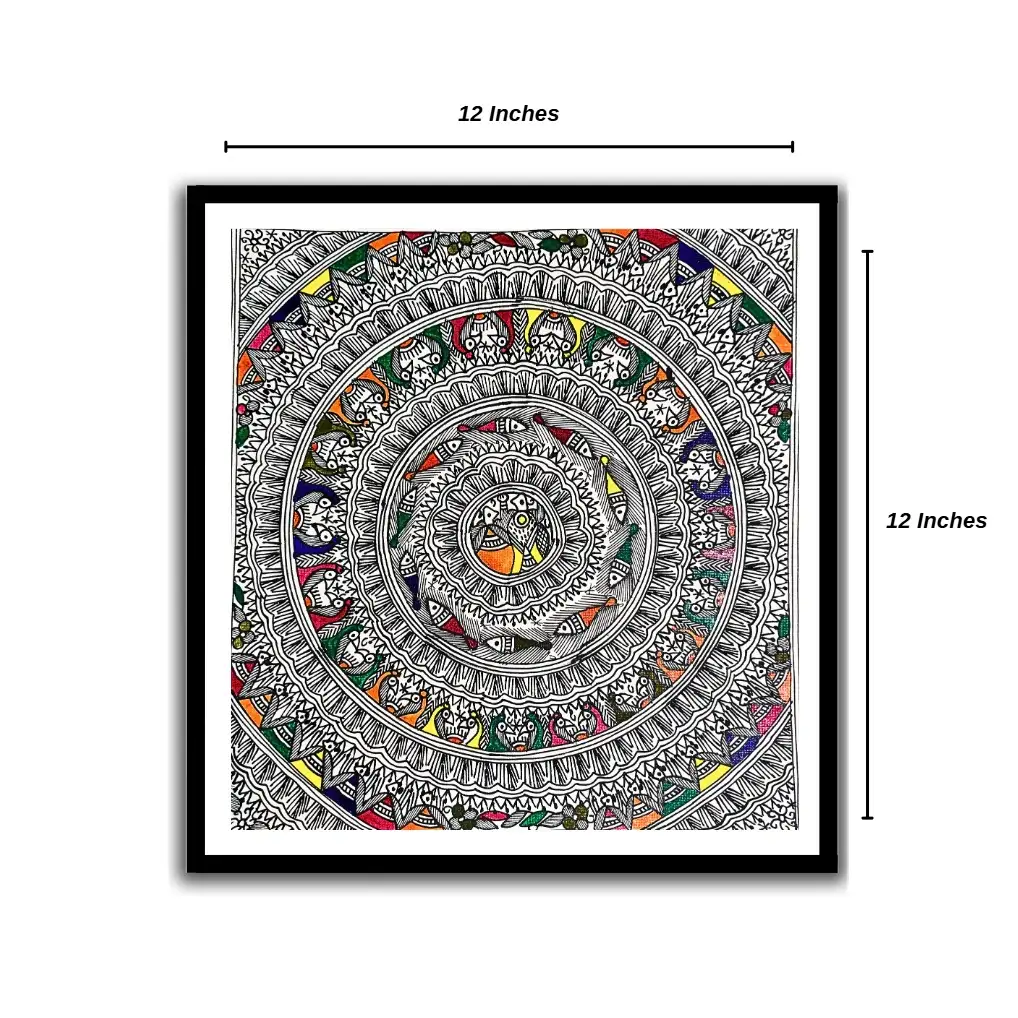 Add cultural elegance to your walls with this Handmade Fish Chain Painting by Artdarshan, crafted in the traditional Madhubani style.