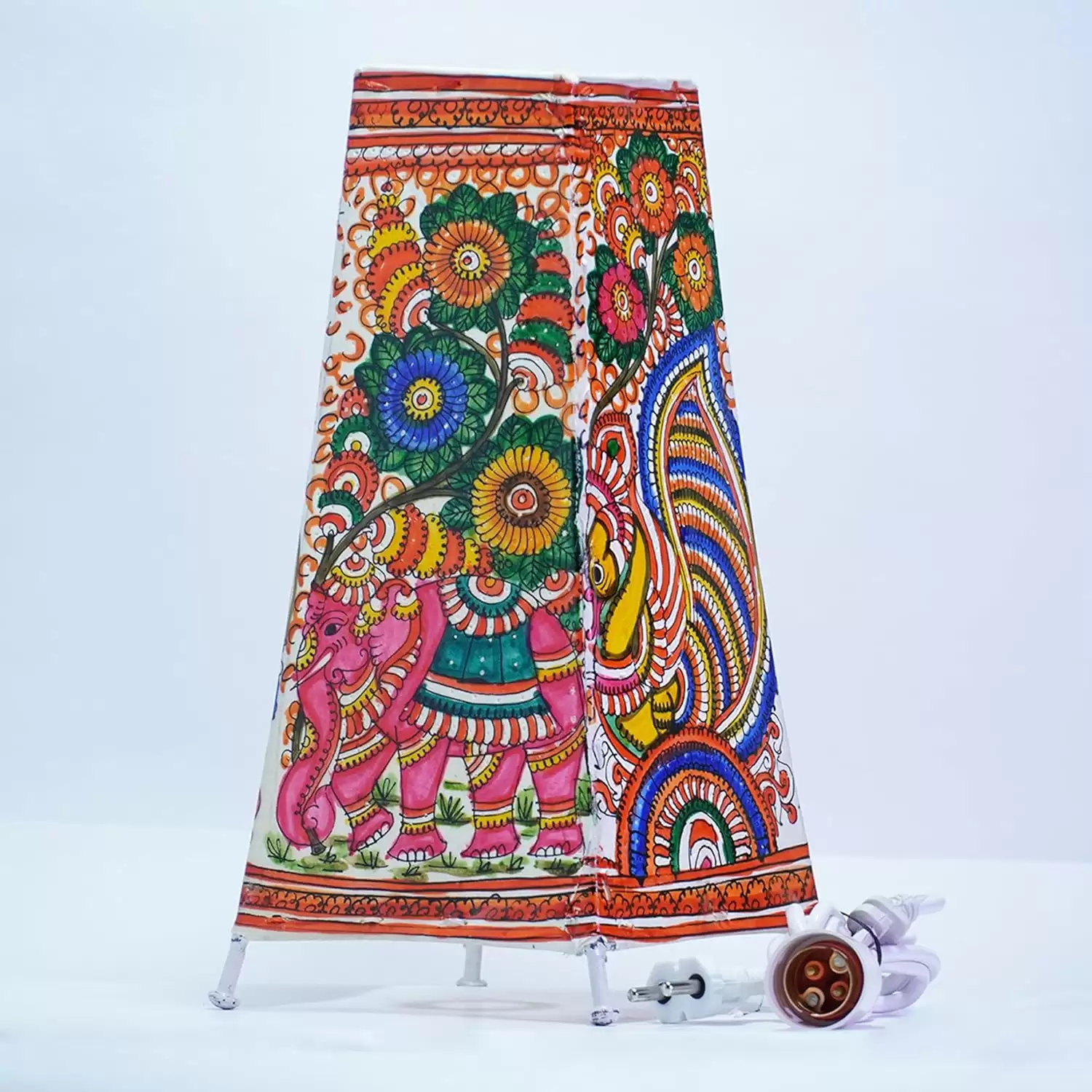 - Meticulously handcrafted leather lampshade with an enchanting design of an elephant and peacock.