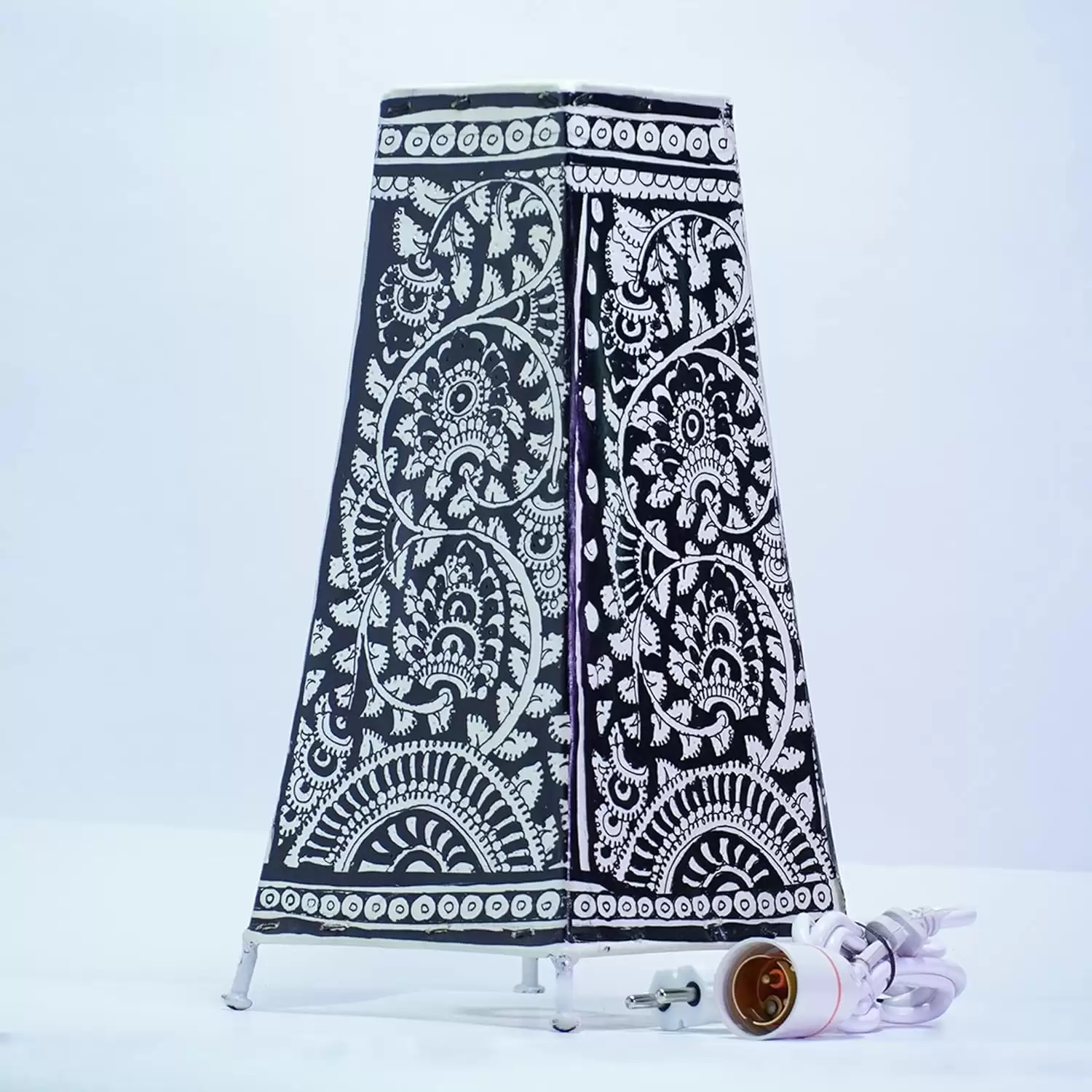 Illuminate your space with the exquisite beauty of the Artdarshan Handcrafted Leather Lamp Shade. This stunning table lamp is meticulously handcrafted to add a touch of elegance to your home decor. The lampshade features a mesmerizing Flower Bliss Art design, which showcases intricate floral patterns that create a captivating visual effect when the lamp is switched on. Its black color enhances the sophistication and versatility of the lamp, making it a perfect addition to any bedroom or living room. Crafted from high-quality leather, this lampshade is not only visually appealing but also durable and long-lasting. The intricate detailing on the leather adds a unique and artistic touch, making it a standout piece in your interior design. Measuring 32.5cmx15.5cm, this lamp is the ideal size for bedside tables, desks, or any small surface that needs a decorative and functional lighting solution. It emits a warm and inviting glow, creating a cozy ambiance in your space. With its handmade craftsmanship and attention to detail, this table lamp is a true work of art. It effortlessly blends modern design with traditional techniques, resulting in a timeless piece that complements a variety of decor styles. Enhance the atmosphere of your home with the Artdarshan Handcrafted Leather Lamp Shade. Whether you're looking to create a cozy reading nook or add a touch of sophistication to your living room, this lamp is the perfect choice.