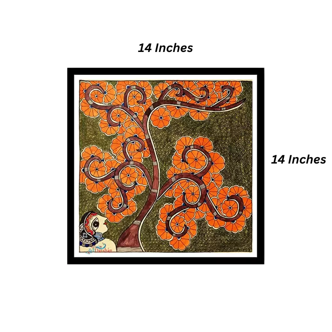 Enhance your living space with the Artdarshan Premium Madhubani Art Painting. This exquisite framed artwork features the Pushp Pari (Flower Fairy) motif, bringing a touch of traditional Indian art to your home or office decor. Key Features: Authentic Madhubani Art: This painting showcases the vibrant and intricate patterns of traditional Madhubani art, handcrafted by skilled artisans. Each piece is unique and carries the cultural richness of Indian folk art. Pushp Pari Design: The Pushp Pari, or Flower Fairy, symbolizes beauty and grace, adding an element of enchantment to your decor. High-Quality Framing: The painting comes in a premium frame, ensuring durability and an elegant finish. It is ready to hang, making it easy to elevate your space. Versatile Decor: Ideal for living rooms, bedrooms, and offices. The 14x14 inches size is perfect for adding a distinctive touch to any room without overwhelming the space. Handcrafted Excellence: Each painting is meticulously crafted, reflecting the rich artistic traditions of India. This ensures you receive a one-of-a-kind piece. Specifications: Size: 14x14 inches, perfect for versatile wall decor. Material: Premium quality materials for both the painting and the frame, ensuring longevity and a sophisticated look. Style: Traditional Indian Madhubani Art Enhance Your Space: Bring the charm of traditional Indian art into your home or office with the Artdarshan Pushp Pari Madhubani Painting. This exquisite piece adds cultural richness and vibrant colors to any room, making it a focal point that draws attention and admiration. Perfect as a thoughtful gift for art lovers, housewarmings, weddings, or any special occasion, this painting embodies the rich artistic heritage of India. Order now and bring home a masterpiece of traditional Indian art!