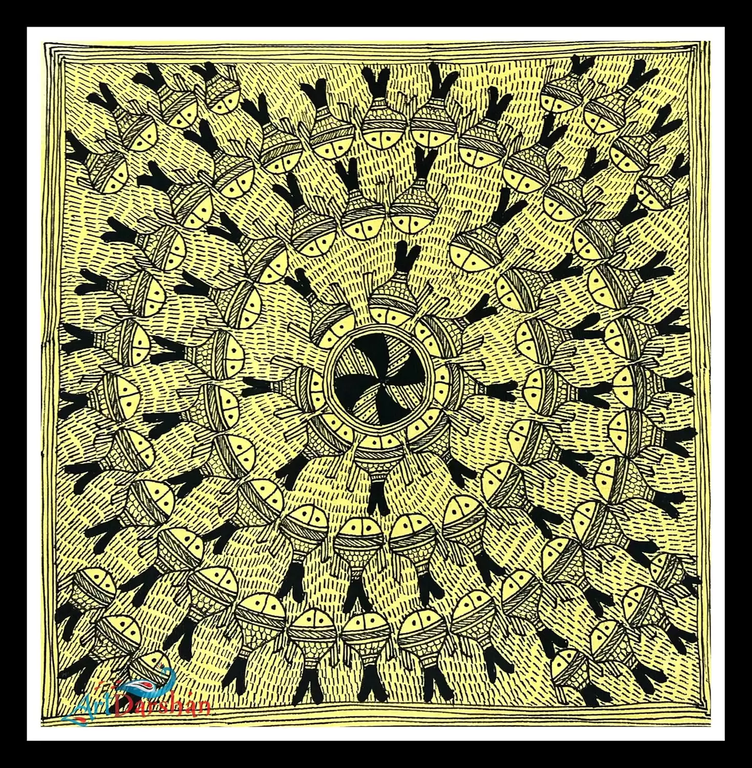 Add a touch of traditional elegance to your space with the Artdarshan Framed Fish Mandala Madhubani Art Painting. This exquisite 14x14 inch artwork is perfect for home and office wall decor, showcasing the intricate beauty of Madhubani art. Featuring a mesmerizing fish mandala design, this painting celebrates India's rich cultural heritage and adds a unique charm to any room. Why Choose Artdarshan Framed Fish Mandala Madhubani Art Painting? Authentic Indian Artwork: Celebrate traditional Indian art with an authentic fish mandala Madhubani painting. Durable and Long-lasting: Crafted with premium materials, both the frame and the painting are designed for longevity and durability. Perfect Gift Idea: Ideal for gifting on occasions such as housewarmings, weddings, anniversaries, and festivals. Enhance Your Decor: Elevate the aesthetics of your space with the Artdarshan Framed Fish Mandala Madhubani Art Painting. Whether you're redecorating your home or adding a touch of tradition to your office, this art piece will impress your guests and create a warm, inviting atmosphere. Order Now and bring home a piece of Indian heritage. Embrace the beauty of Madhubani art and make every wall in your home or office a focal point.