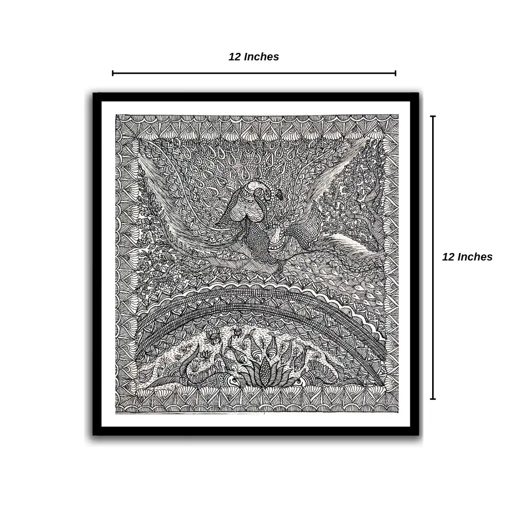 Crafted with fine detailing in the traditional Mithila style, this painting is perfect for living rooms, bedrooms, meditation spaces, and offices. It also makes a thoughtful gift for weddings, anniversaries, festivals, and housewarmings, carrying blessings of harmony and prosperity