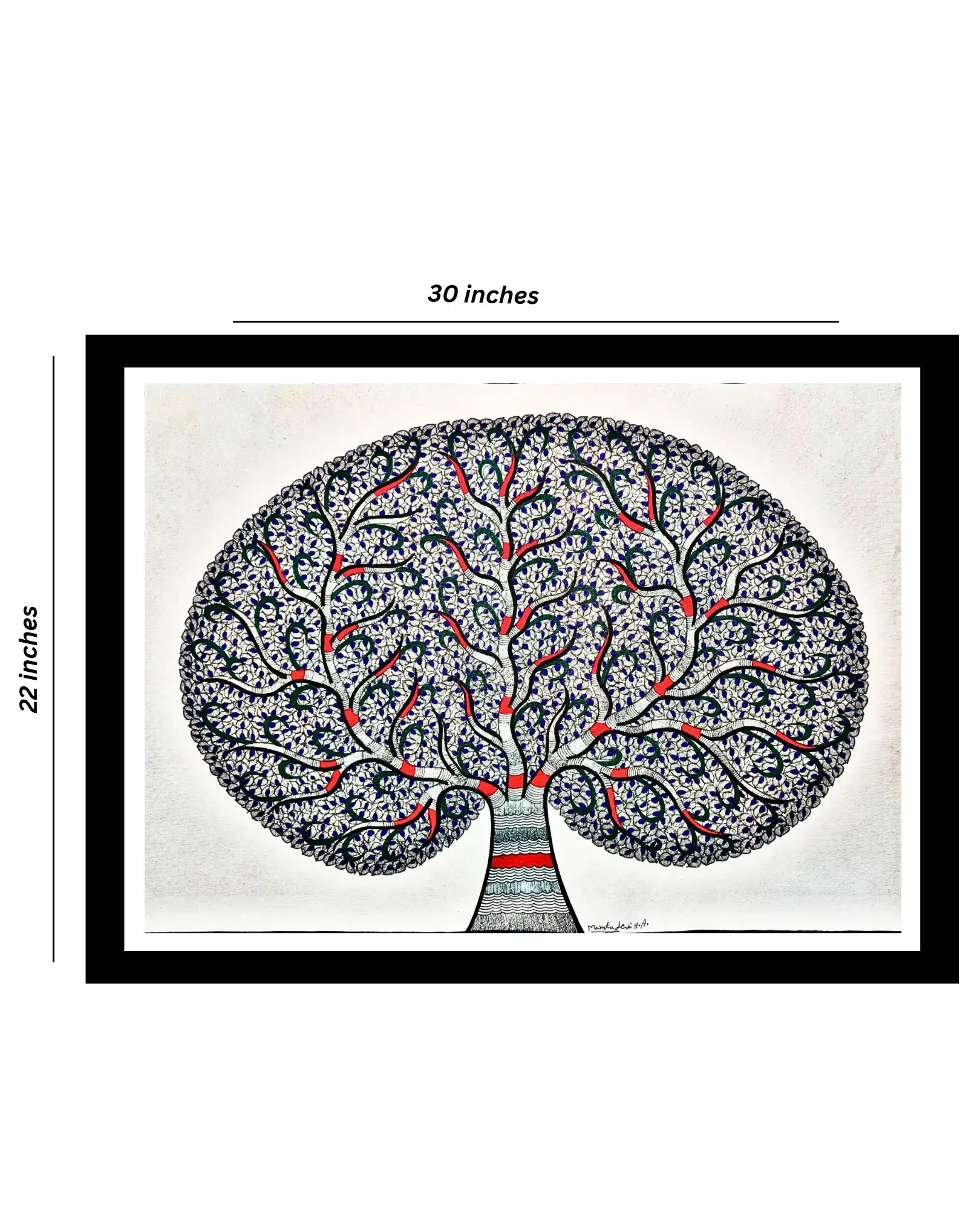 This Tree of Life Handmade Mithila Art Painting beautifully captures the essence of life, growth, and balance through traditional Madhubani artistry. Known for its intricate patterns and symbolic motifs, this folk art from Mithila, Bihar, is hand-painted using eco-friendly natural pigments. A perfect addition to your living space, office, or art collection, this piece is a timeless reflection of Indian culture and craftsmanship.
