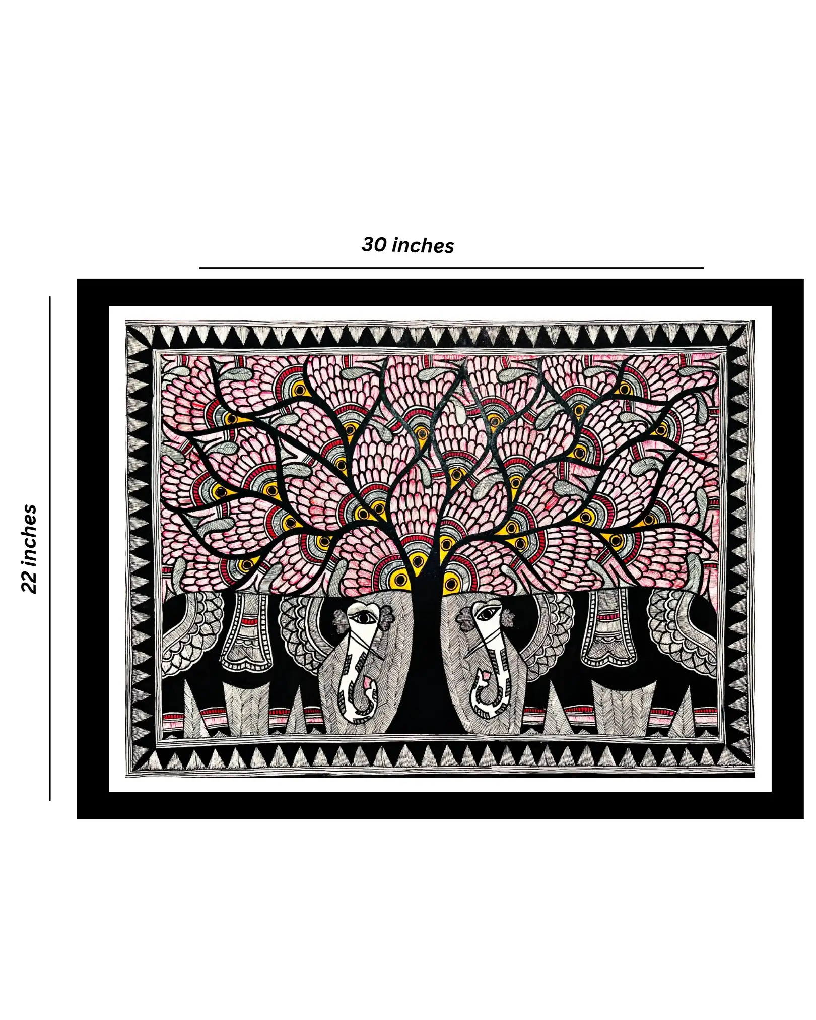 Celebrate the timeless beauty of Mithila (Madhubani) folk art with this exquisite Tree & Elephant Couple Handmade Painting. Elephants in Indian culture represent wisdom, power, and good fortune, while the tree symbolizes growth and stability. Hand-painted by skilled artisans from Bihar, this artwork is created using eco-friendly natural colors and intricate detailing, making it a perfect piece for art collectors, home décor enthusiasts, or as a meaningful gift for special occasions.