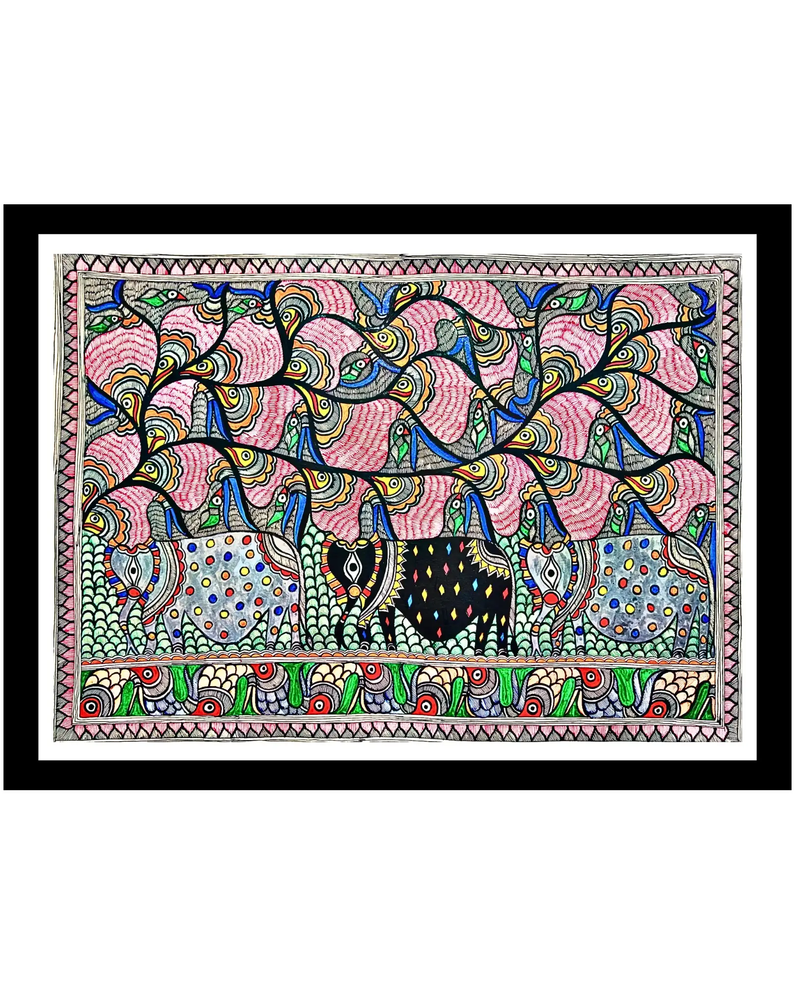 his Elephants & Fishes Handmade Madhubani Painting is a beautiful blend of two powerful cultural motifs: