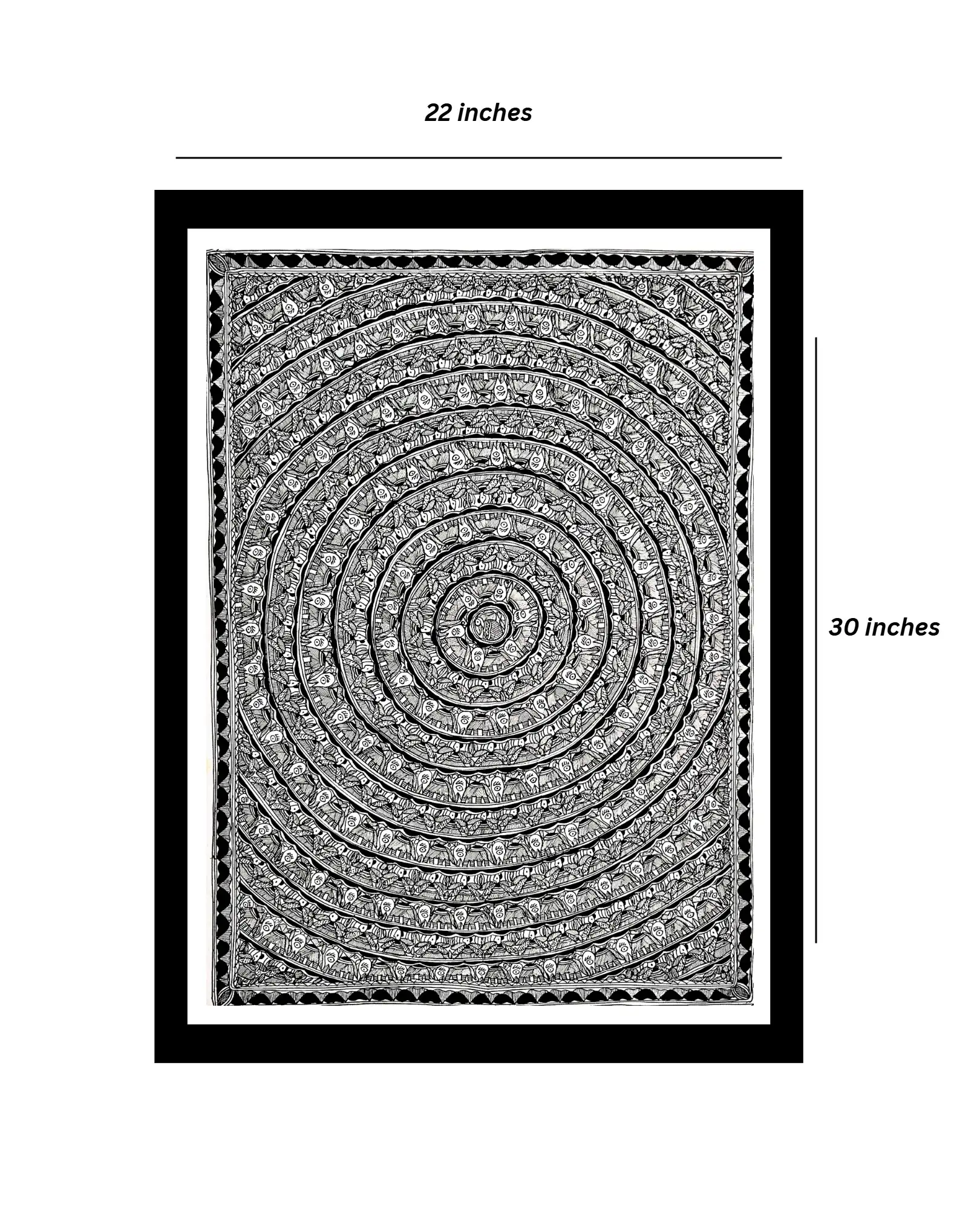 This Black & White Godna Elephant Chain Handmade Madhubani Painting represents one of the most ancient styles of Madhubani art, known as Godna, inspired by tribal tattoo patterns. Featuring a chain of elephants — symbols of wisdom, strength, and protection — this artwork showcases bold black-and-white detailing without the use of bright colors, making it a striking and minimalistic piece. Created by skilled artisans from Mithila, Bihar, this painting is perfect for art collectors, home and office décor, or cultural gifting.