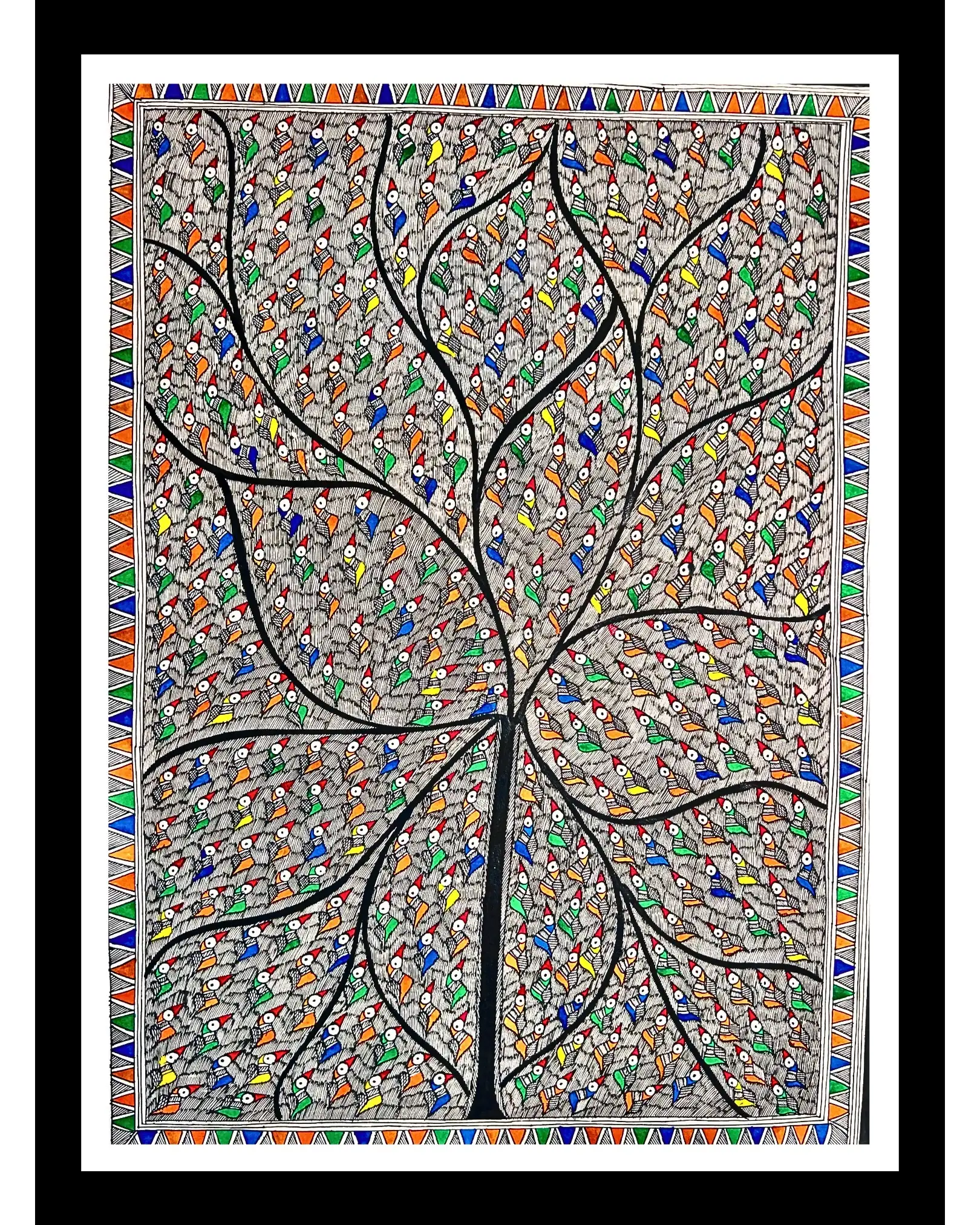 This exquisite Madhubani handmade painting of tree & birds is a perfect blend of tradition, culture, and artistry. Created by skilled artisans from Mithila, Bihar, the artwork symbolizes harmony between nature and life. The intricate detailing of the tree, surrounded by beautifully painted birds, reflects the deep-rooted storytelling tradition of Madhubani art.