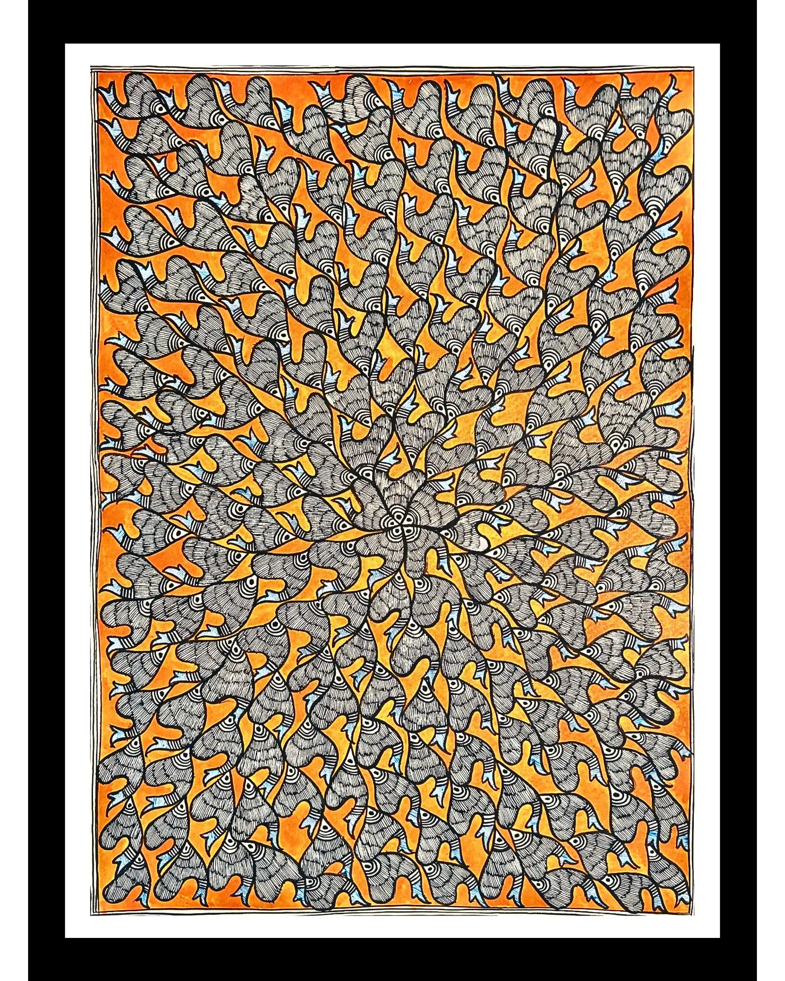 This Fishes Madhubani Handmade Painting is a classic representation of Mithila’s traditional folk art, known for its bold patterns and vibrant symbolism. In Indian culture, fishes are a sign of fertility, wealth, and positivity, making this artwork not just decorative but meaningful.