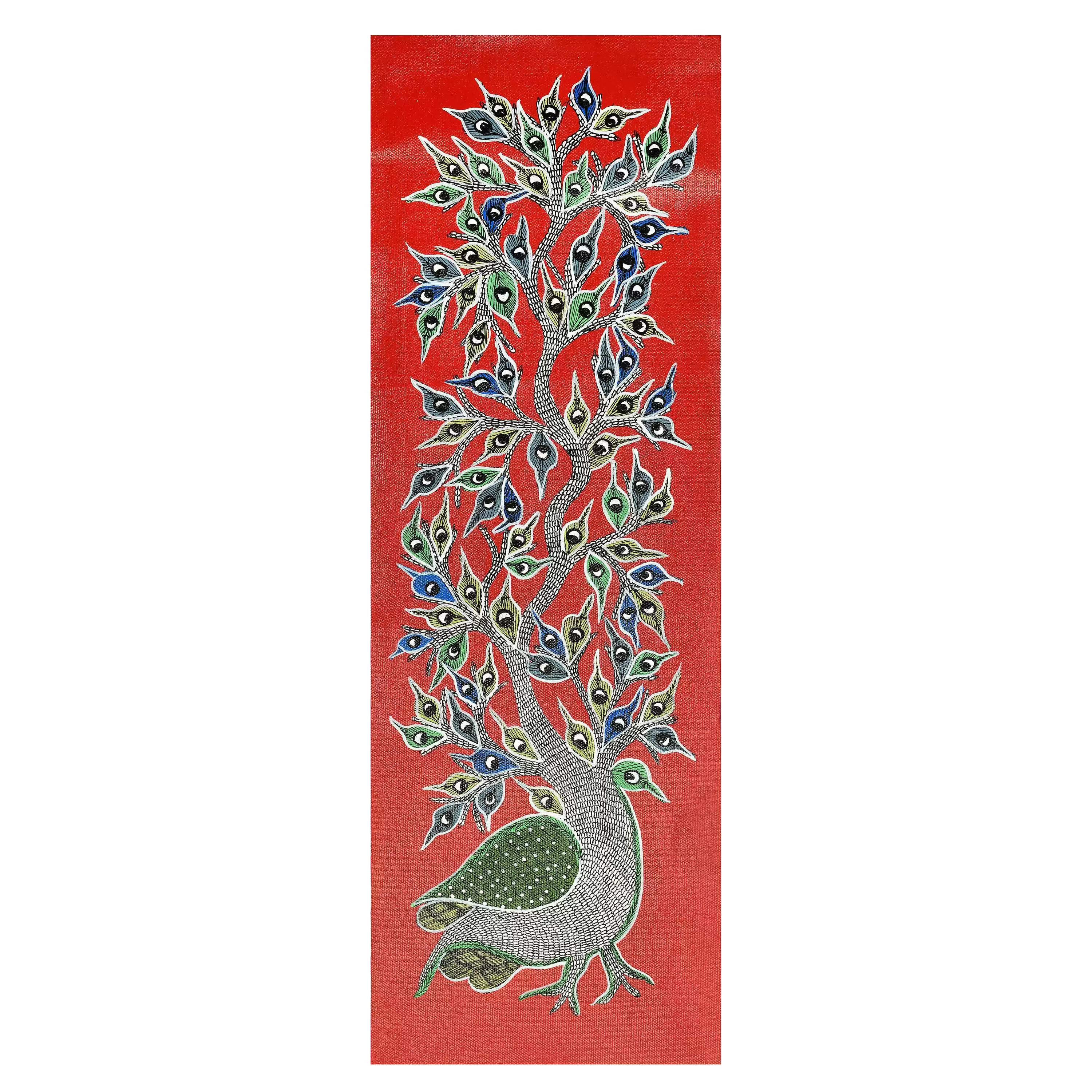 Peacock & Tree Gond Art Painting for Home Wall Art Decor