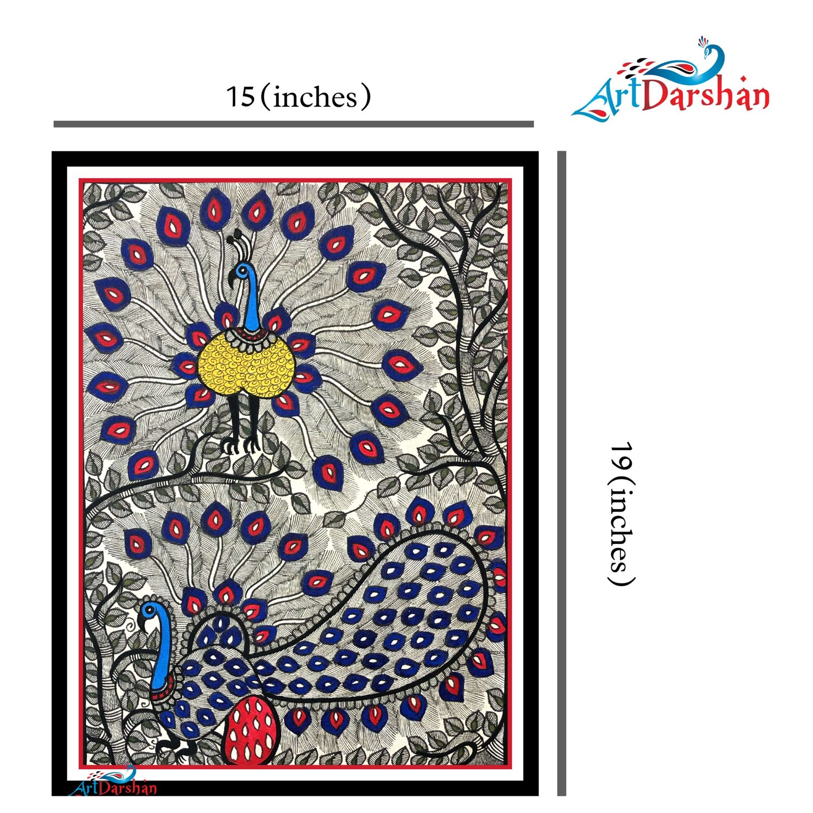 Add a touch of Traditional and cultural richness to your home decor with this beautiful Madhubani art painting of dancing peacocks. Handcrafted by skilled Indian artisans, this framed Mithila art painting showcases the intricate detailing and vibrant colors that are typical of this traditional art form. The dancing peacock couple is a symbol of love and harmony, making it an ideal choice for your living room, bedroom, or any other space that you want to infuse with positive energy. The Madhubani painting is easy to hang and will instantly enhance the aesthetic appeal of your home.